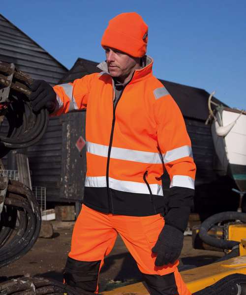 A high visibility, on-trend lightweight and warm softshell jacket. Durable water-repellent finish, breathable, and windproof.