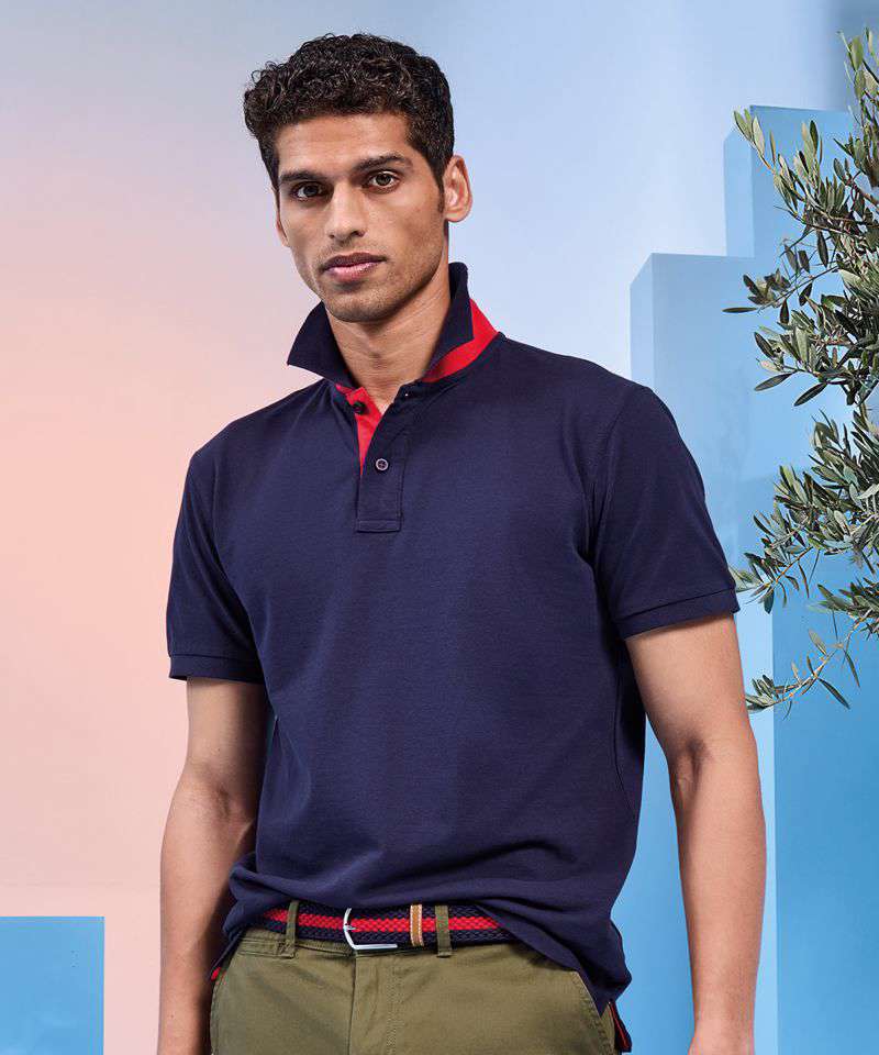 Classic fit polo with contrast colour detail on the placket and under the collar. 2 buttons to the placket. Short sleeves. Side vents. Knitted collar and cuffs. Machine washable. Product contains no branded neck label. Removable Kimble or looped garment tags. Inner seam label holds important product information on one label with a second label containing brand information which can be cut-away. Please note old stock may contain a fixed branded label.