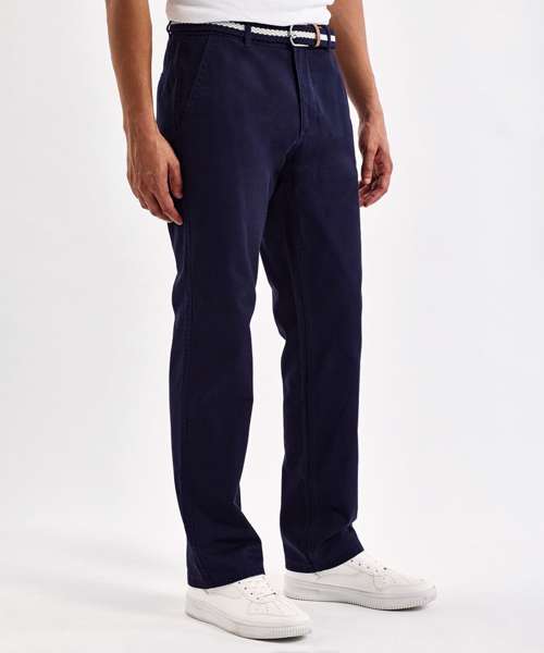 Classic regular fit chino. Soft finish fabric. Two back jet pockets with button fastening. Zip fly. Button fastening at waist. Machine washable. Product contains no branded neck label. Removable Kimble or looped garment tags. Inner seam label holds important product information on one label with a second label containing brand information which can be cut-away. Please note old stock may contain a fixed branded label.