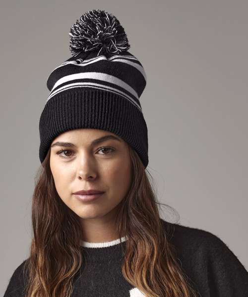 Contains 100% certified recycled polyester. Classic colour combinations. Double-layer knit. Two-tone pom pom. Cuffed design for optimal decoration. TearAway label for ease of rebranding.