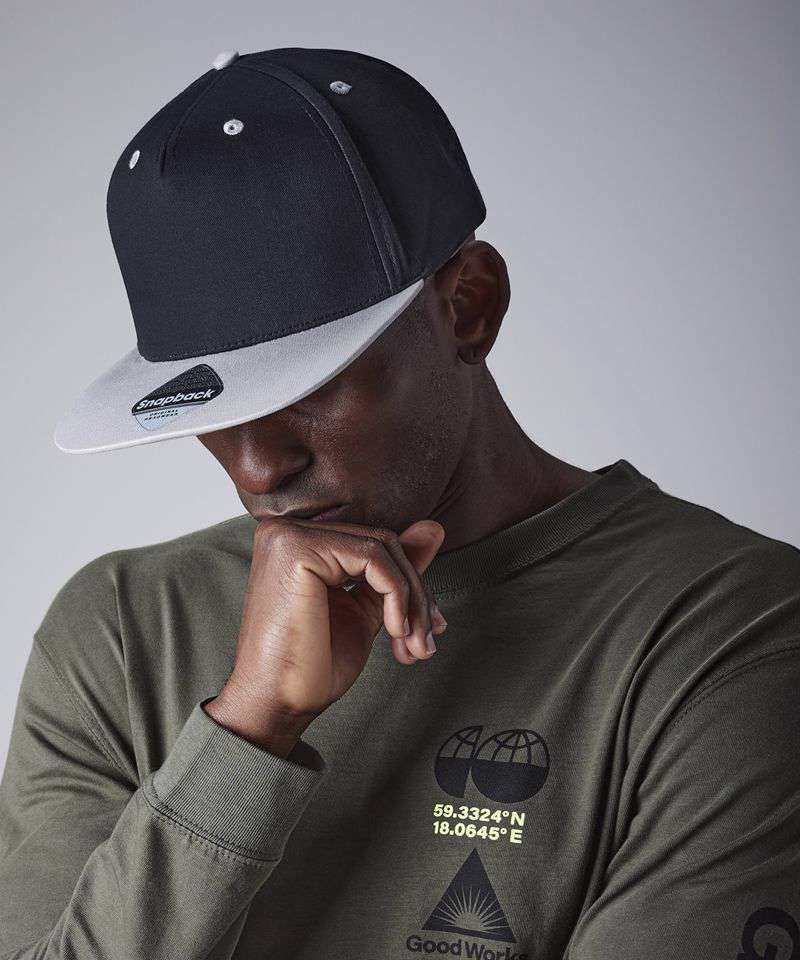 - Retro-style snapback size adjusterFlat peak, contrast detailingAuthentic peak sticker