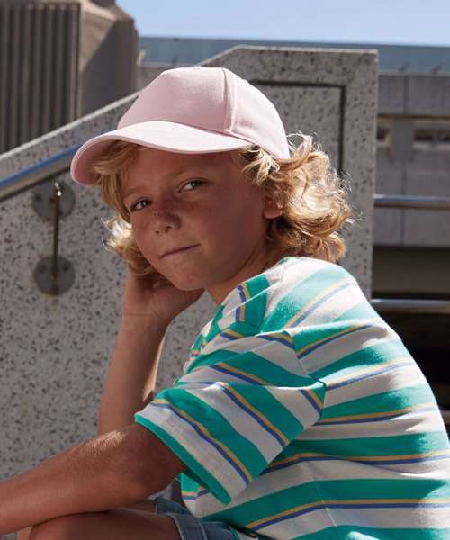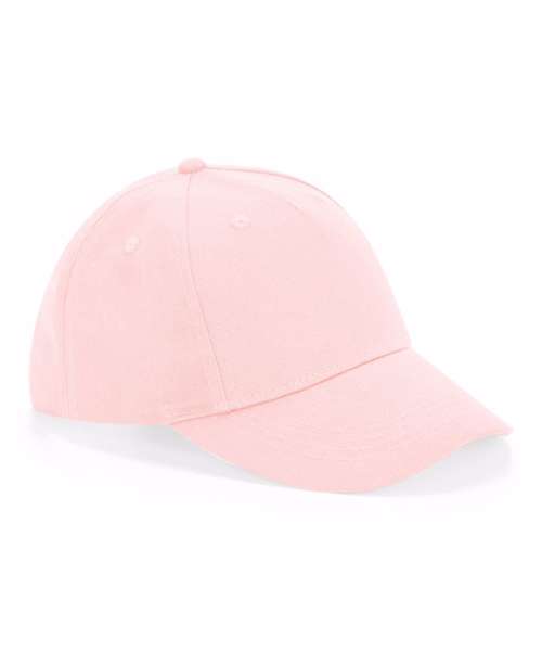 The B63NB is the latest addition to Beechfield®’s growing family of junior caps. This 5 panel design, crafted from 100% certified organic cotton twill, features a pre-curved peak, stitched ventilation eyelets, a child-safe secure top button and a fully adjustable snapback size adjuster offering ergonomic comfort. Complemented by a palette of 6 family friendly colourways, from Powder Pink to Pistachio.