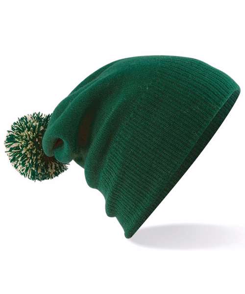 - Dual style cuffed or slouchTwo-tone pom pomDouble-layer knit