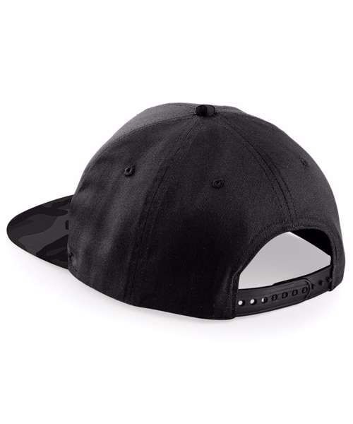 Tear away label for ease of rebranding. Flat peak. Retro style snapback size adjuster. Camouflage detailing. Stitched ventilation eyelets. 5-panel design. Reach certified.