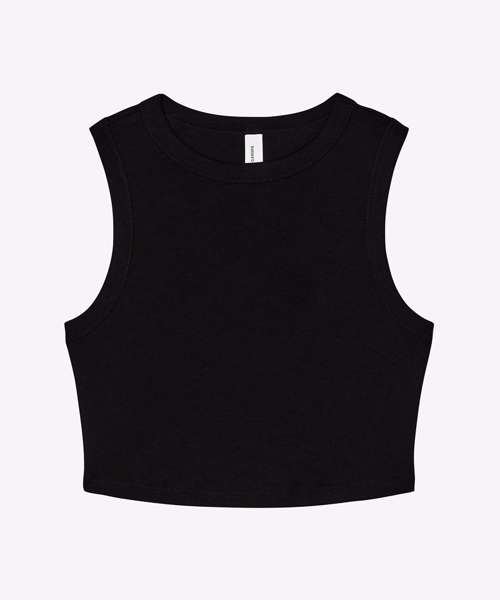 Deep armholes. Cropped. 1x1 micro rib. Fitted. Stretch fit. Pre-shrunk. Side-seamed.