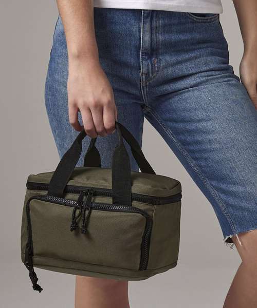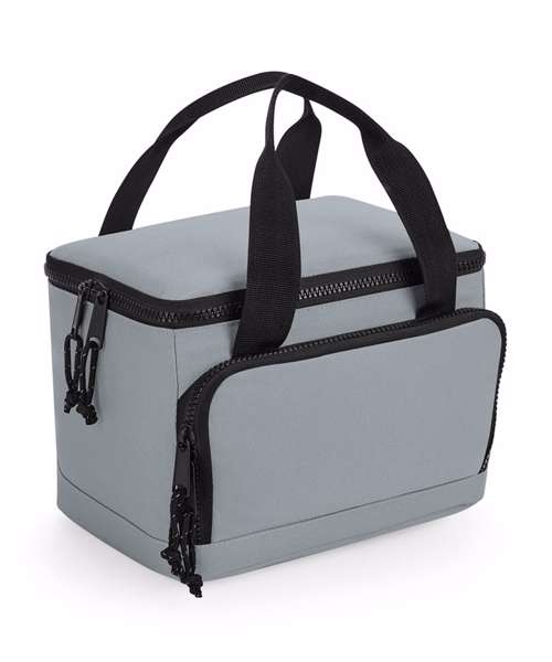 100% Recycled 600D polyester. PVC-free. PEVA lining – BPA-free. Food-safe, fully insulated main compartment. Zipped main compartment. Zipped front pocket. Wipe-clean interior. Internal slip pocket. Twin carry handles. Cord zip pulls with reflective detailing. TearAway label for easy rebranding.