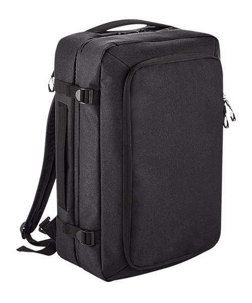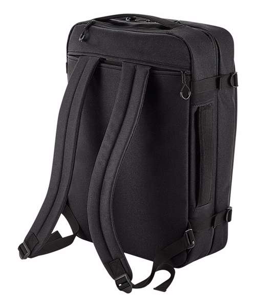 TearAway label for ease of rebranding. Convenient dual compartment design for easy packing. Padded laptop sleeve compatible up to 15.6". Lockable main compartment zip. Quick access zippered top pocket. Large zippered front compartment with internal mesh divider. Zippered internal pocket. Dual compression straps. Padded top and side handles. Foldaway backpack shoulder straps aircraft cabin compatible - suitable for most airlines. Can be further customised with BG485 Escape handle wrap.