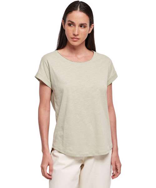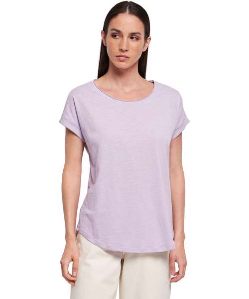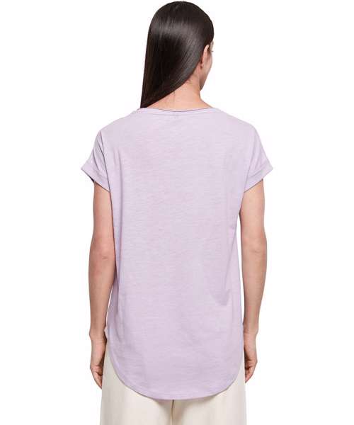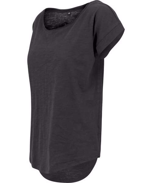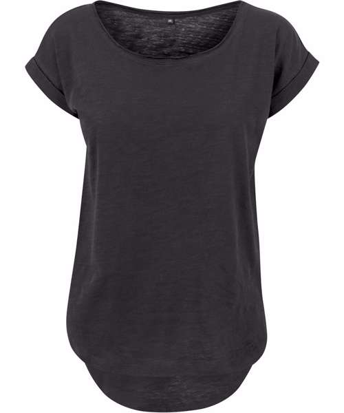 With its oversized sleeves, rounded hem and slightly elongated back, the Women's long slub tee has the classic long tee style. The wide neckline and light single jersey fabric give it a very feminine look. Ideally suited for embellishing with printing.
