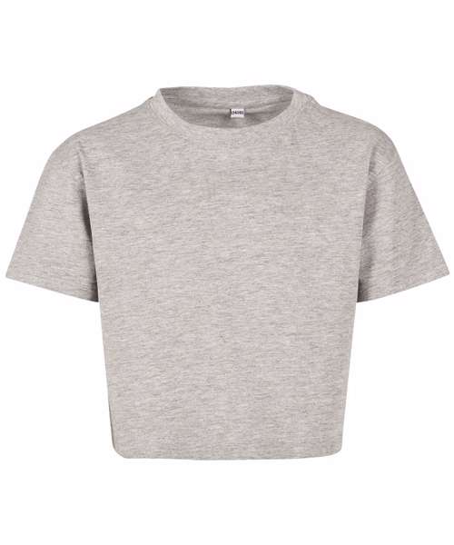 The girls cropped Jersey tee is a classic basic item with a trendy look. This shirt features a typical crew neck for a touch of nonchalance. While short sleeves make it ideal for warmer days, the shortened cut ensures that it will turn heads. The soft Jersey quality is ideal for silkscreen or flex printing.