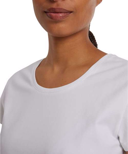 The women’s Sorona® regular tee combines sustainability with a feminine design. Its flattering fit, along with the exceptional softness of the Sorona® fibre, make this t-shirt a favourite for any occasion. Breathable, easy to care for and long-lasting in shape, it’s the perfect companion for everyday wear and leisure. Innovative Sorona® fibre is made largely from plant-based materials and is renowned for its remarkable properties in terms of sustainability and performance. It’s derived from renewable resources and requires less energy to produce when compared to traditional synthetic fibres. Exceptionally lightweight and soft, it offers outstanding elasticity, ensuring long-lasting comfort. It’s also easy to care for and is quick-drying, retaining its shape and texture even after multiple washes. Thanks to these qualities, Sorona® is ideal for creating functional yet stylish garments that meet the highest standards of comfort and sustainability.