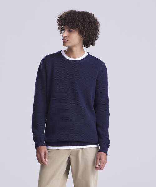 Working towards a more sustainable planet, the Taroko sweater is made from using 70% regenerated cotton waste and 30% recycled polyester. This stylish sweater features crew neck, ribbed cuffs and hem with a seed stitch for a truly unique layer. Waffle knit and fashion fit.