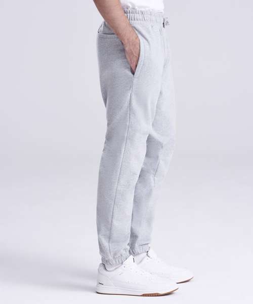 Relaxed unisex fit. 70% recycled cotton. Cuffed leg opening. Elasticated waist with DTM drawcords. Brushed inner fleece. Side pockets. Size tab only, for easy rebranding.