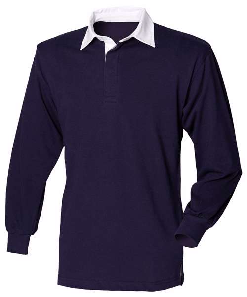 The long-sleeved plain rugby shirt has ample space to display a bold slogan, logo or crest making it perfect for everyone from fashion brands to traditional clubs. Made from 100% cotton it has a traditional woven rugby collar, taped shoulders, self-fabric facing on side vents and elastane reinforced cuffs exemplary of the quality design detail Front Row is known for.