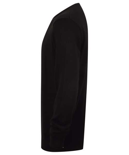 Fine knit. 12 gauge crew neck jumper. Semi fashion neck detail. Set-in-sleeves. 1x1 rib and cuff.