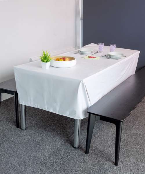 Tablecloth in White. Water-resistant. Easy to clean. Ideal for indoor or outdoor use. Size: 132 x 178cm.