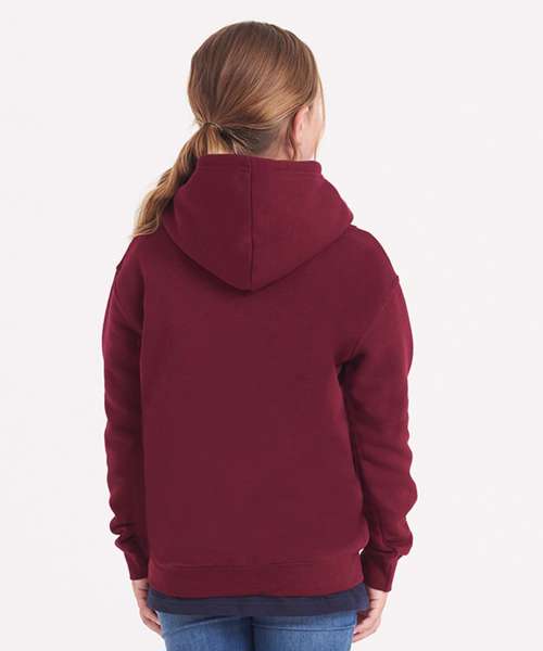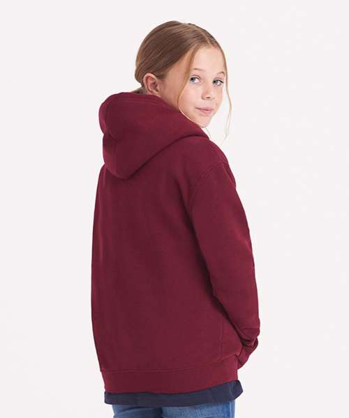 Twin-needle stitching detail. Double-fabric hood. No drawcords – to comply with EU regulation. Kangaroo pouch pocket. Ribbed cuffs and hem. Brushed inner fleece. Soft-cotton faced fabric creates ideal printing surface. Simple tear-out label makes it perfect for rebranding.