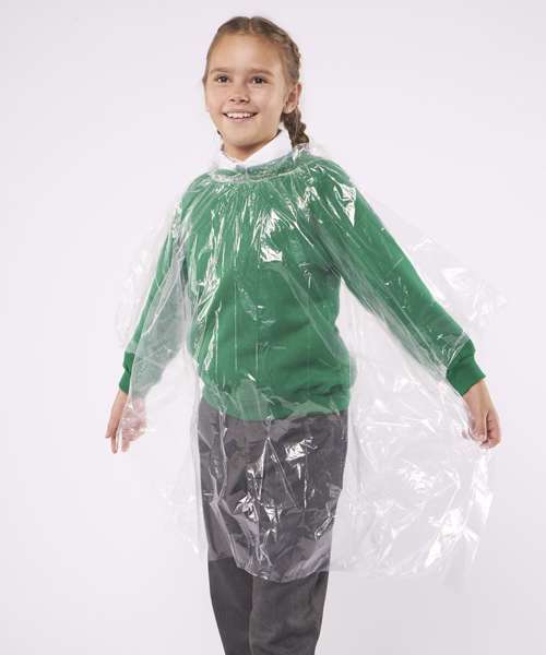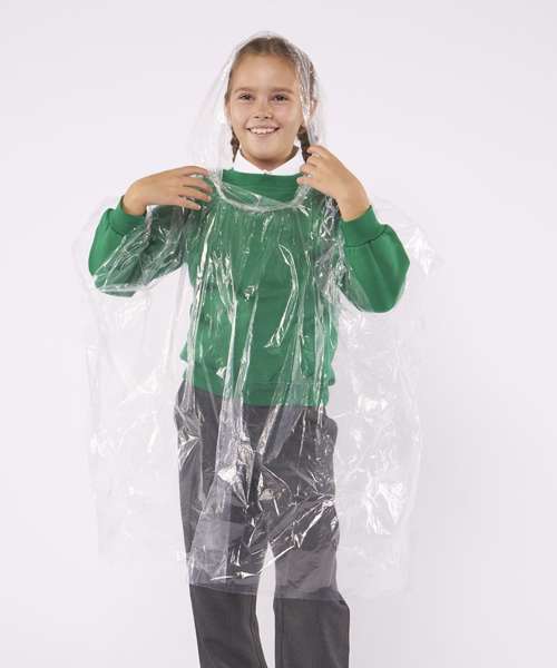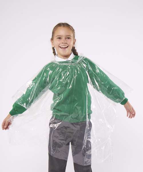 Kids emergency hooded plastic poncho. Lightweight and reusable .