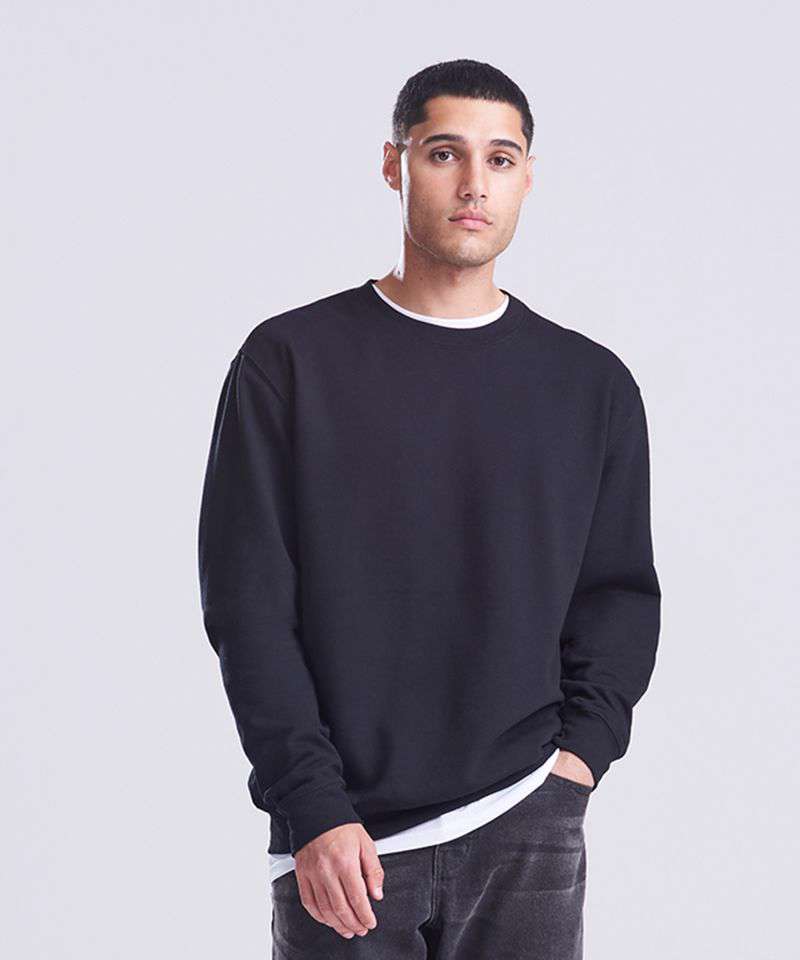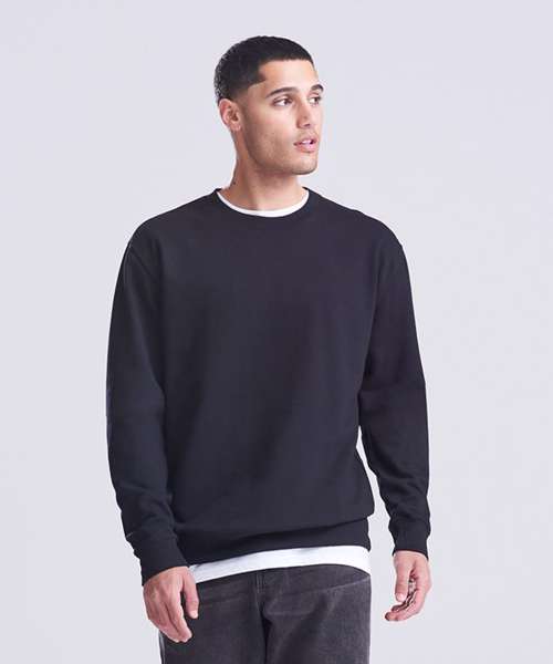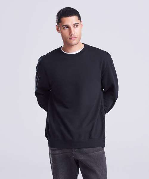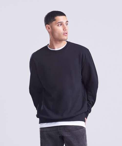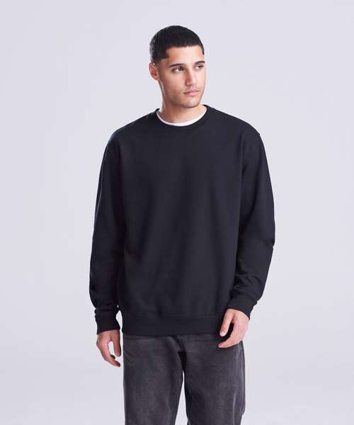 Crew neck sweat. Set-in-sleeves. Taped neck. Stylish fit. Soft cotton faced fabric creates ideal printing surface. Simple tear out label makes it perfect for rebranding. Twin needle stitching detailing. Ribbed collar, cuff and hem. Brushed inner fleece.