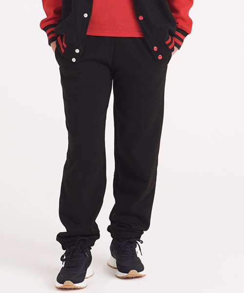 Side pockets. Cuffed leg opening. 1x1 rib waistband. No drawcords to comply with EU regulation. Soft cotton faced fabric creates ideal printing surface. Simple tear out label makes it perfect for rebranding. Brushed inner fleece.