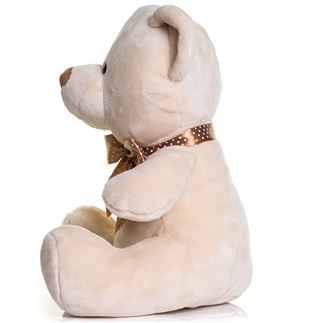 Velvet Bears with a contrast nose. Brown ribbon with cream spots. Suitable for clothing in sizes Small, Medium, and Large. Complies with EN71 European Toy Safety regulations. Remove all hang tags and their fasteners before giving these items to a child. Not suitable for children under the age of 36 months.