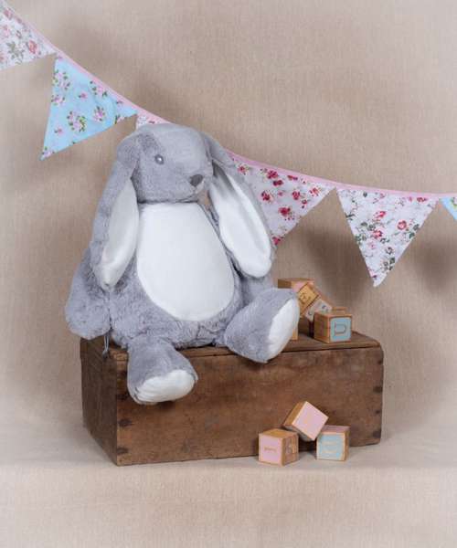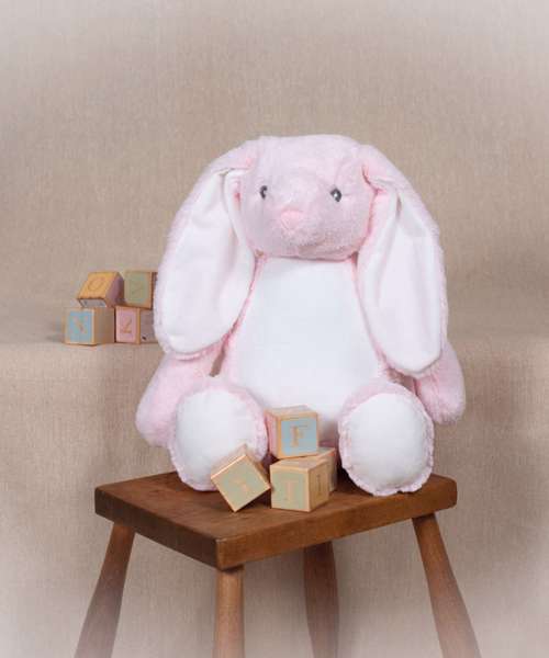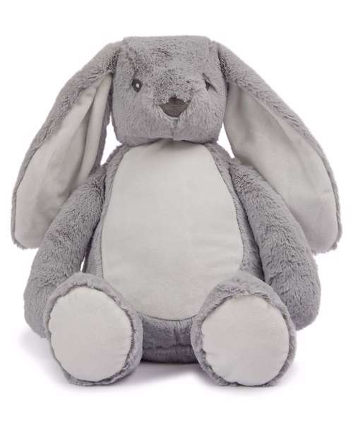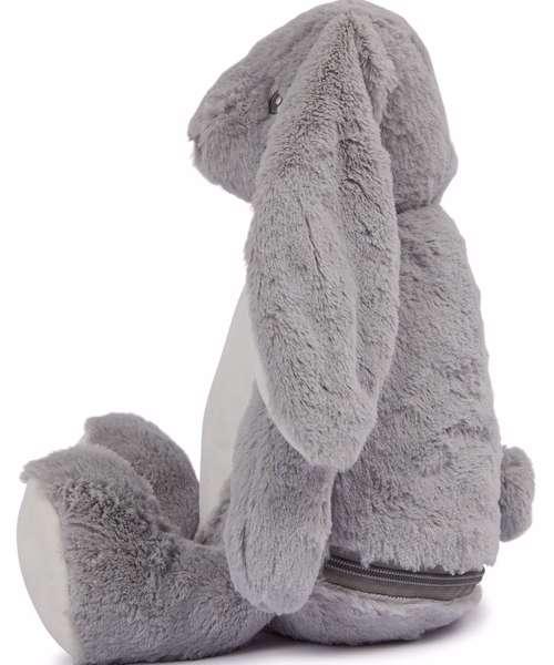Hop along with the Zippier bunny with soft plush fur and lovable floppy ears. The bunny's tummy is easily embroidered and printed with zip access at base.