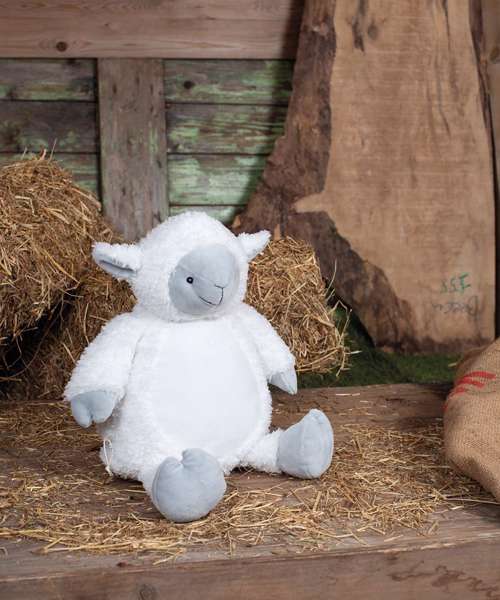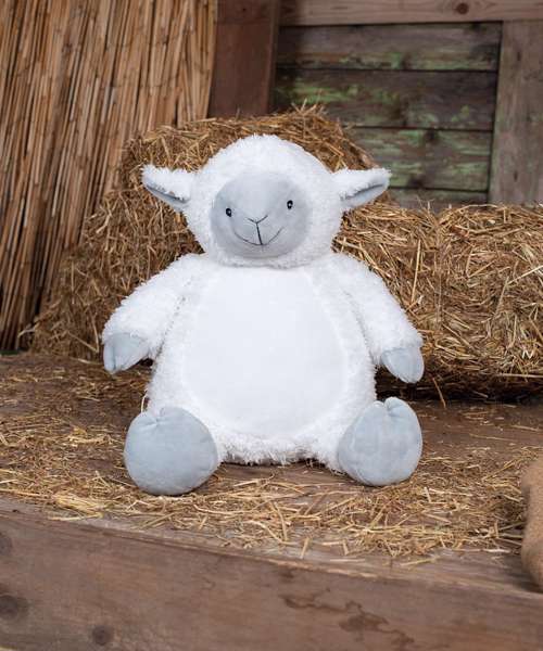 Get a spring in your step with the soft plush Zippie Lamb. Wrapped in a cream woolly coat with contrast grey face, hands, feet and inner ears. Perfect for decorating, the tummy is made in a flatter pile for easy embroidery or print.