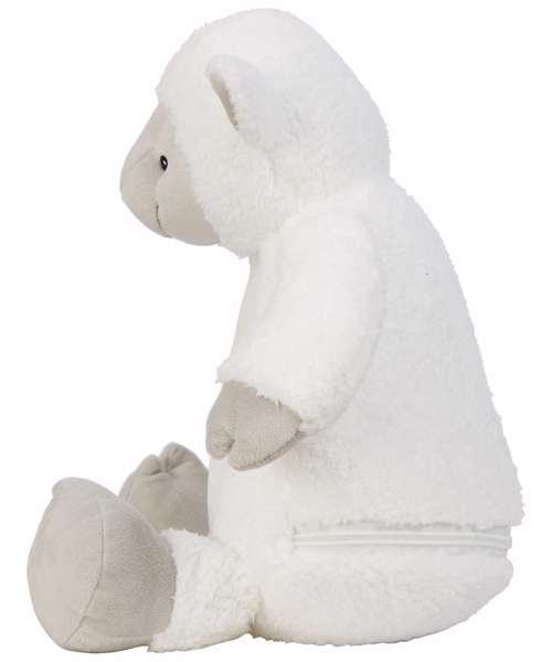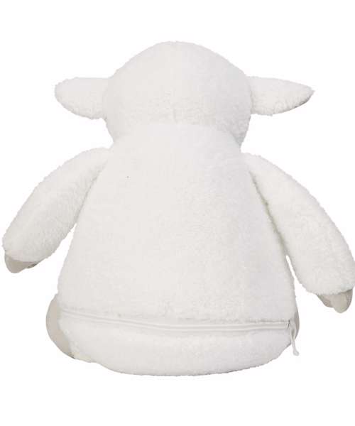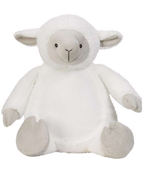Soft plush Zippie Lamb with contrast face, hands, feet, and inner ear. Sewn eyes and mouth. White panel on tummy, perfect for decoration. Zip access on base for direct access onto the tummy for decoration. Removable inner stuffing. Can be embroidered, vinyl, and sublimation printed. Complies with EN71 European Toy Safety regulations. Remove all hang tags and their fasteners before giving these items to a child. Suitable for all ages.