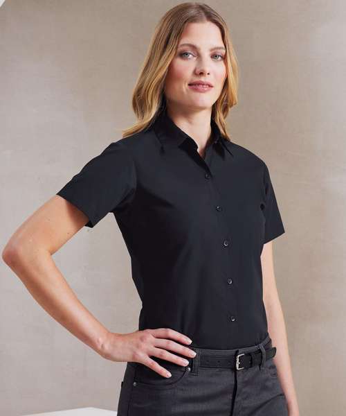 A ladies short sleeve Supreme Poplin blouse which comes in a heavy weight material resulting in a longer lasting blouse with improved appearance. The fitted styling, soft collar and rounded hem create a flattering fit resulting in a great everyday work blouse.