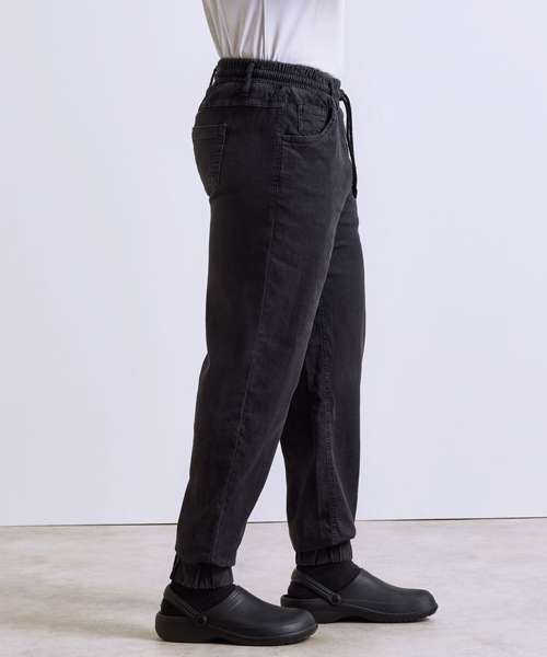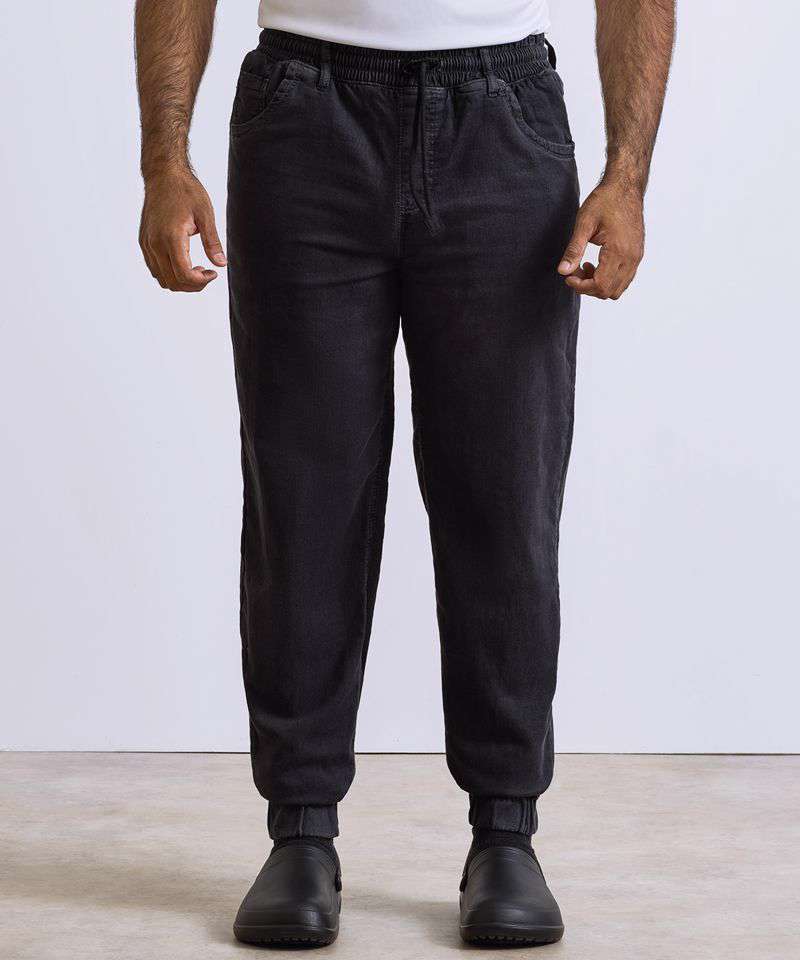 A super comfy pair of chef’s jogging trousers with a classic cuffed ankle. Easy pull-on style with an elasticated waist and draw cord for adjustment. Features a stitched faux fly and swing pockets. To the back there are two handy patch pockets. A cotton-rich knit achieves a very soft and comfortable trouser for chef's teams.