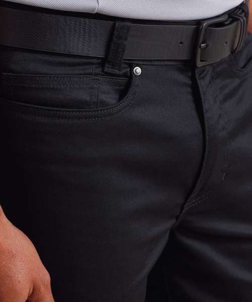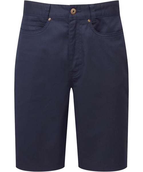 Men’s chino shorts with a touch of elastane for comfortable stretch performance. To the waistband there are loops to facilitate a belt, a metal button and a hook and bar for secure fastening. Covered YKK zip fly and side pockets with rivet detail for a typical ‘chino’ look. Two patch pockets to the reverse. Finished with a double turned hem.