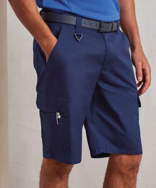 An excellent solution for those who work in roles where full-length trousers can be restrictive to movement. A hardwearing, durable and practical pair of cargo shorts with multi mobile-friendly pockets for carrying essential kit. There's loops to the waistband to facilitate a belt and a metal button and covered zip-fly for secure fastening. A relaxed workwear style for the warmer months whilst also proving to be a smart solution for customer facing roles. A highly versatile pair of men's cargo shorts that are washable to 60C. Made with certified recycled polyester.