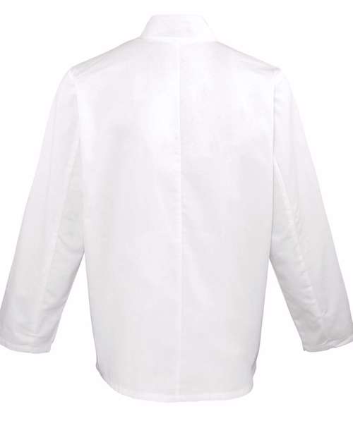 An easycare long sleeve chef's jacket with a ten-button wrap over style fastening. To withstand the demands of repeated washing, the buttons are long-life resin buttons. A smart jacket for chefs with a mandarin collar for a streamlined look. Available in black, white and steel across a wide range of sizes.