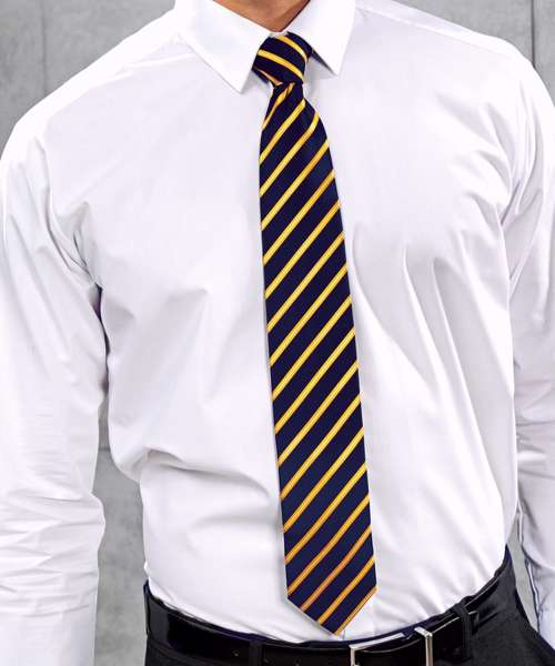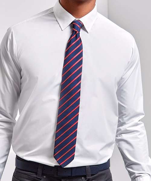 A classic Sports Stripe Tie worn as a traditional piece of teamwear for those looking for a cohesive look. Narrow stripes are woven in across the full length of the tie, making for a pleasing style.