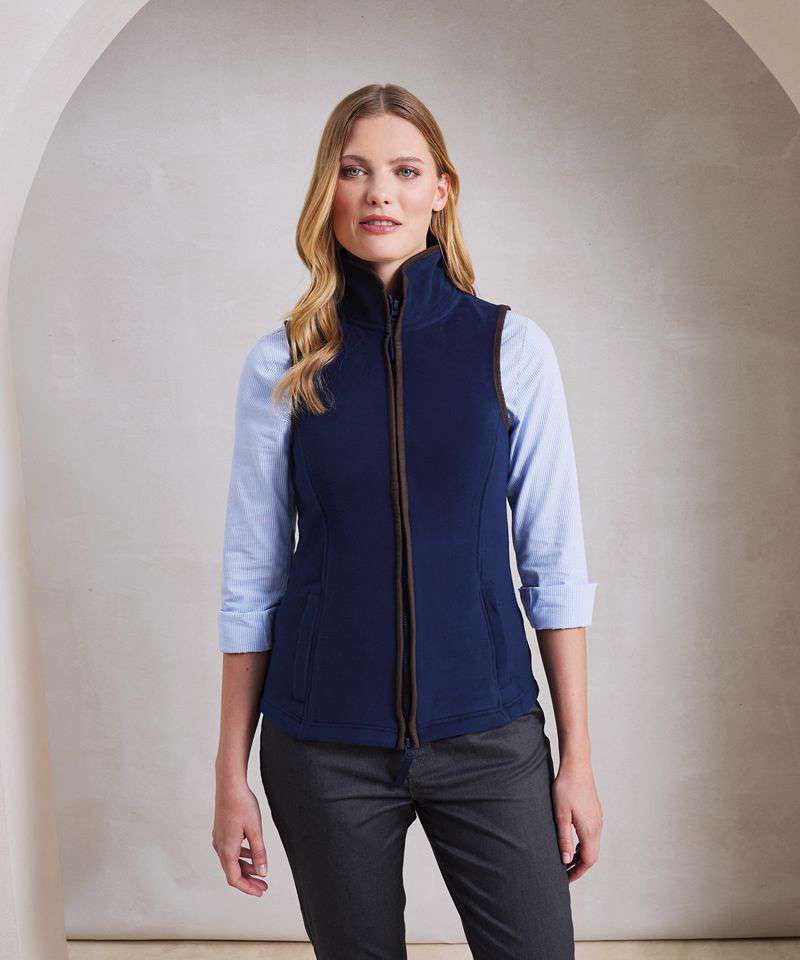 The perfect solution for those who need an extra layer of warmth when serving outdoors. This sleeveless women’s gilet allows complete freedom of movement in the arms for ease of service, and the two-way zipper enables staff to unfasten from the hem up, to access a pocket apron underneath. Designed with a slight curve to the back hem for a more feminine look. Contrast trim detail to the pockets, arm holes, collar and zip completes this attractive fleece gilet.