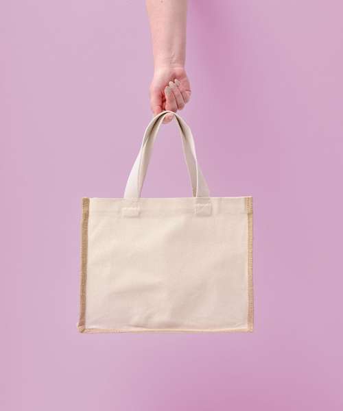 Ready to upgrade your everyday bag? Available in three convenient sizes – small, medium and large – these jute shoppers offer plenty of room for all your daily essentials. The smooth cotton canvas panel is ideal for custom branding or creative decoration, making it a standout choice for gifts, promotions and retail.