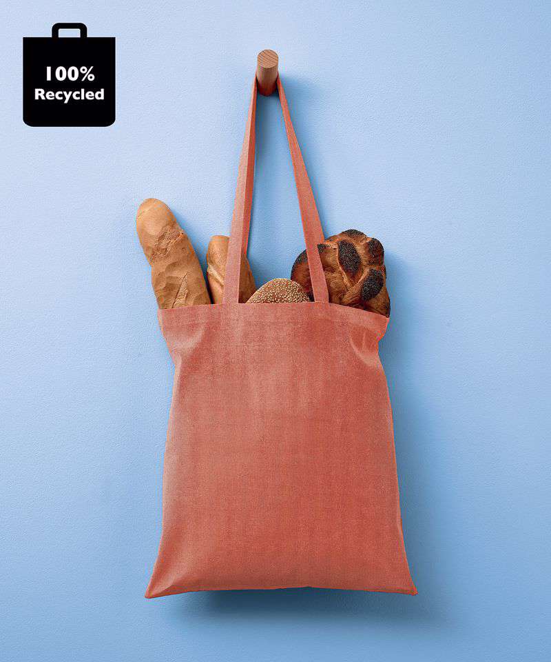 Made from recycled cotton, this tote can be carried over the shoulder or by hand. Created with 150gsm recycled cotton. Handles measure 35cm x 3cm. Marl effect colours are a blend of natural and coloured cotton.
