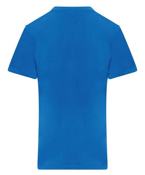 Short sleeves. Ribbed self-coloured crew neck collar. Self-coloured taped back neck and shoulder. Twin-needle stitching on neck and armhole. Side seams. Twin-needle stitching on sleeve and bottom hem.