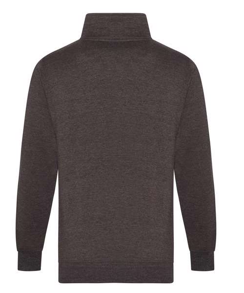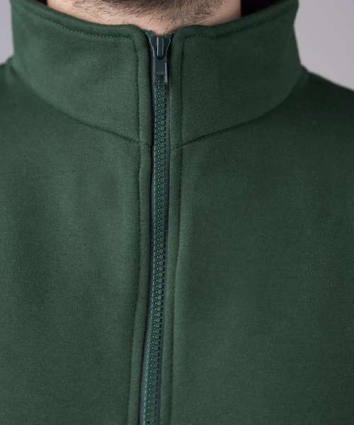 YKK zip and pull. Twin-needle stitching at arm, cuff and hem. 2x1 rib on cuff and hem. Heavier-weight fabric. Modern yet comfortable fit. Half-zip neck. Brushed inner fleece.