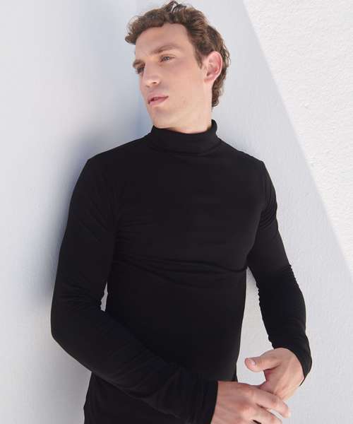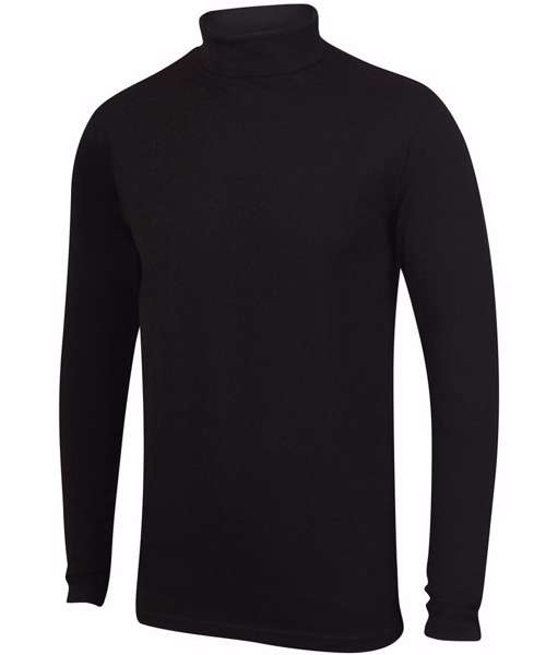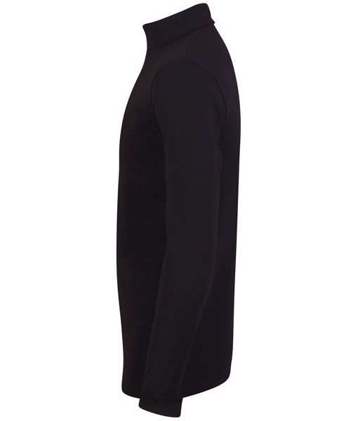 A sleek black roll-neck from the SF feel good stretch range! Made with soft stretch fabric, it has a supreme finish and, of course, feels good. Features a tear-out label for easy rebranding.