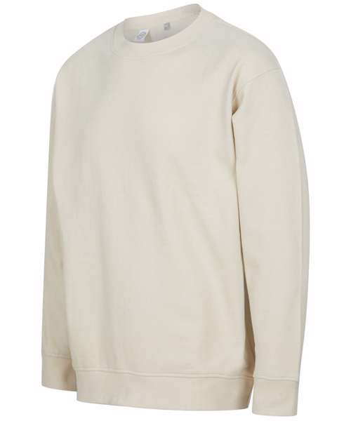 Unisex relaxed-fit sweat. Set-in sleeves, dropped shoulders. Droptail hem – curved high front, low back. Ribbed hem cuffs and crew neck. Single Jersey back neck tape and facing. Tonal topstitching detail. Brand-free, for easy rebranding. Contains recycled cotton and recycled polyester.