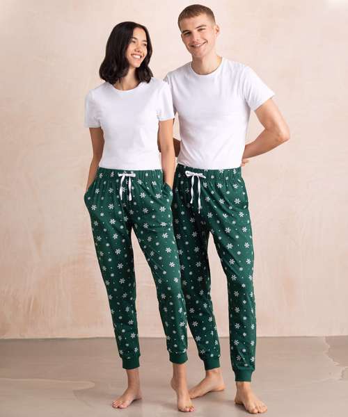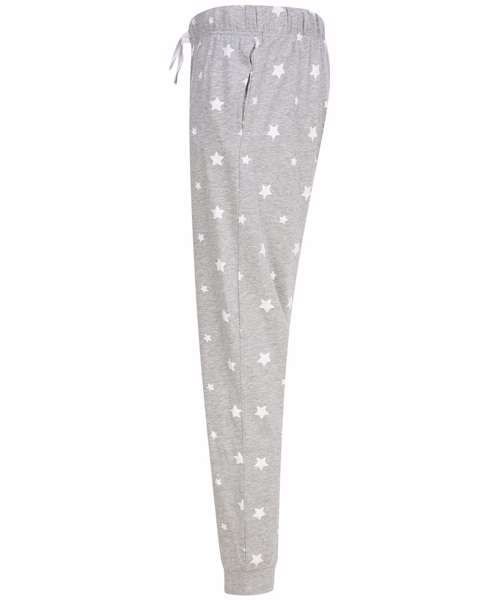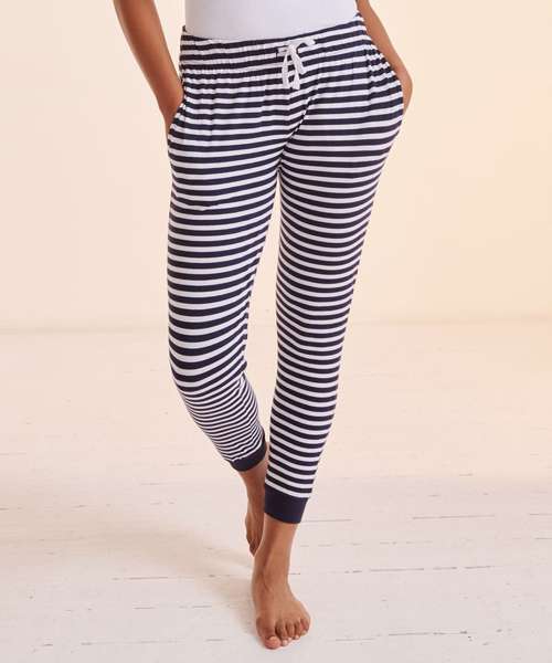 Stretch lounge pants with elasticated waistband and drawcord. Self-fabric cuffed hem with side seam pockets. Tear-out label.