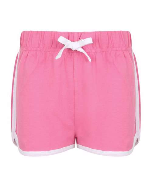Take a sporty route to fashion with the popular retro shorts. Great style and freedom to move combined in these retro look shorts with contrast binding and sweet curved side hems. Modern, athletic and cool. Tear-out label, for easy rebranding.