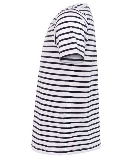 You can't go wrong with stripes. Fun. Impactful. A modern classic. Made with quality striped cotton Jersey. The stretch rib neck and back neck tape ensure a premium finish. The tear-out label is removable for rebranding.