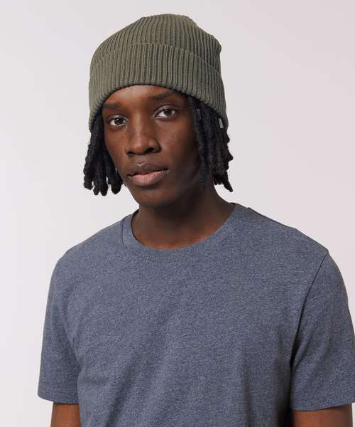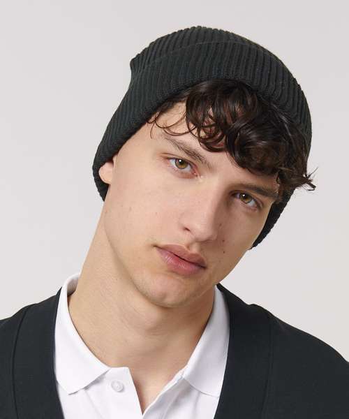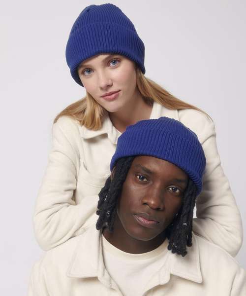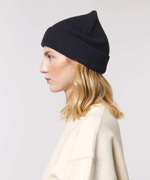Wide rib beanie which can be turned up with one or two folds. Made of organic cotton. Unisex fit, in a wide range of colours.