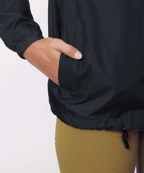 Welt pockets at front. Round drawcords at bottom hem in matching body colour, with metal tipping. Semi-elastic sleeve cuff. Inside chest welt pocket. Self-fabric half-moon at back neck. Inside zip opening at bottom hem and wearer’s left chest for easy decoration.