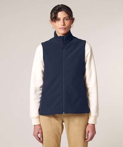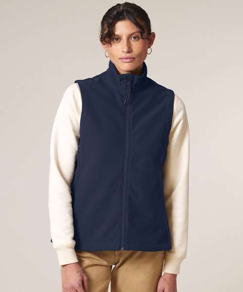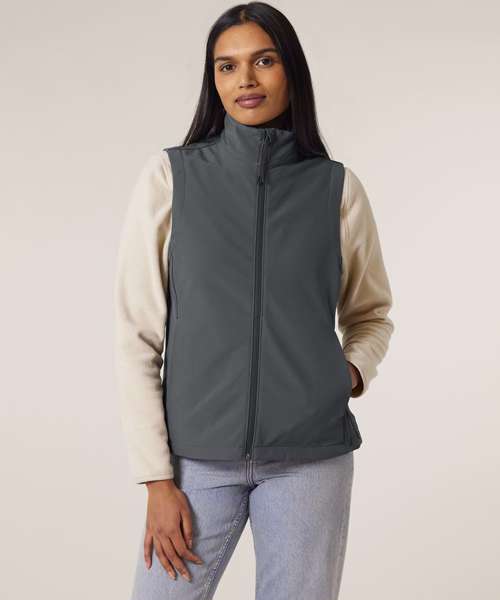 Premium women’s sleeveless softshell jacket. 315gsm stretch fabric with recycled TPU membrane and inside fleece layer. Water-repellent, breathable and windproof.