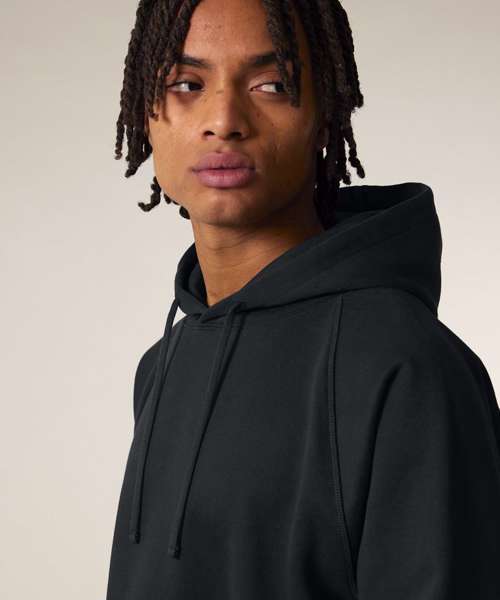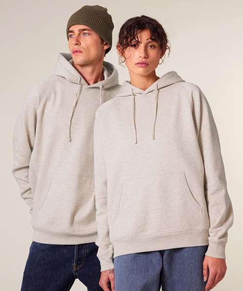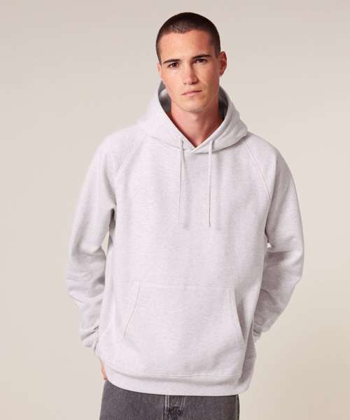 Premium, unisex, relaxed raglan hoodie sweatshirt in 100% organic cotton, 400gsm. Inspired by heritage American sportswear styles. Excellent printability.