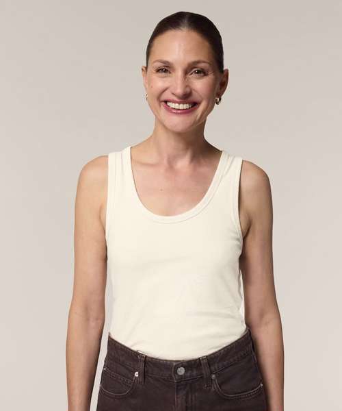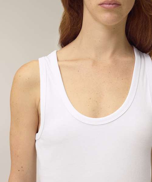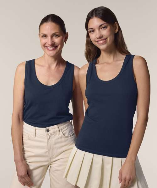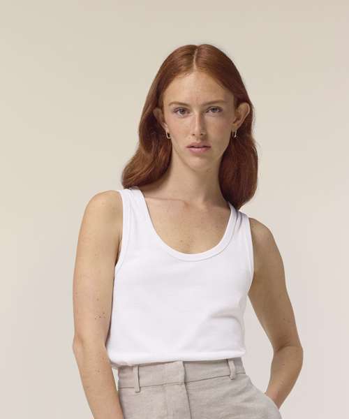 The Stella Ava fitted tank top, for women, is a stylish layering piece made from soft 100% organic cotton. This versatile, eco-friendly garment has a flattering neckline and form-fitting design that makes it ideal as a layering tank top worn under a shirt or light jacket, or as a stand-alone summer staple. Its 180gsm single Jersey fabric is ideal for all kinds of decoration, from screen printing to embroidery; and because it provides full coverage with no transparency, this organic cotton tank top can confidently be worn alone. When it comes to sustainable womenswear that’s designed to be decorated, the Stella Ava tank top delivers the ultimate in quality, comfort and versatility.