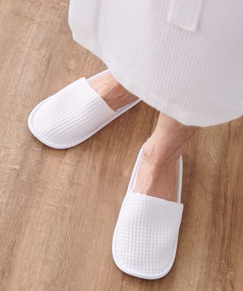 Step out in comfort with the waffle mule slippers made from textured waffle fabric.