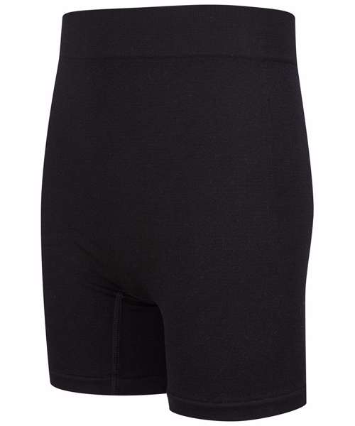 High-waisted, fitted stretch shorts in melange fabric (Dark Grey Marl). Seamless knit for comfort. Blind stitching at hems and grown-on waistband. Tombo tear-out label.